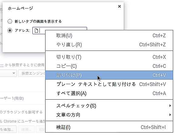 Chromiumを起動してログインして開くホームボタンと起動ページの設定