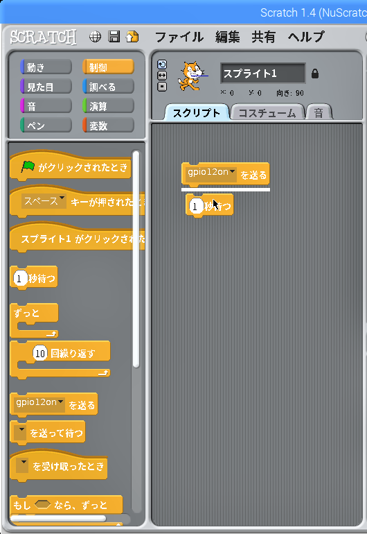 できた「gpio12on▼を送る」をクリックしても【第4回】のときのLEDのようには音は出ませんでした。