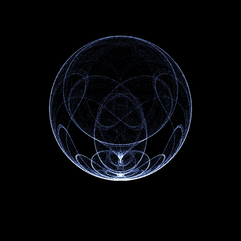 以下の例は、デザイナーでプログラマーである松永歩さんという方が自身の公式サイトで公開しているカオスの実験です。ローレンツ方程式を使って収束する系のカオスを表現していますが、この模様は再帰的にプロットされていくドットが最終的に終わりを迎えます。