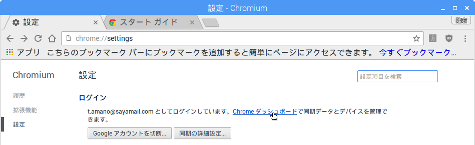 この状態で“OK”ボタンをクリックすれば、Chromiumを起動する度に、google アカウントの“ログイン”画面が