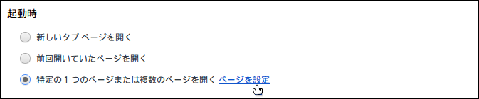 項目”起動時”のラジオボタン”特定の1つのページまたは複数のページを開く”をクリックし、