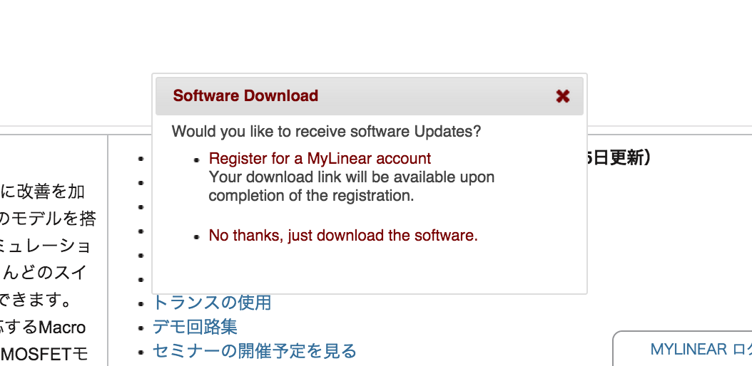 Resister for a MyLinear account : ライナーテクノロジー社にフリーのアカウントを作成し、登録してからダウンロードします。