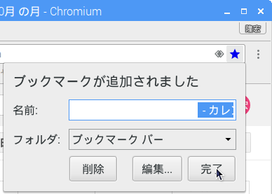 いつもの”カレンダー”を表示した状態で、アドレスバー右の☆印をクリックし、”完了”ボタンをクリックします。