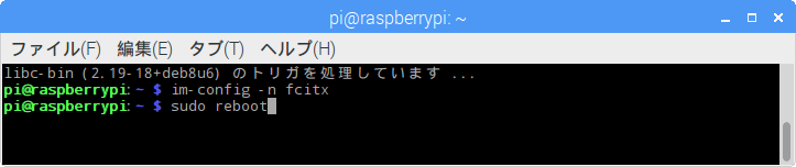 「sudo reboot」と入力してエンターを押せば、Raspberry Piが再起動されます。