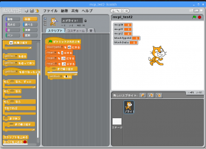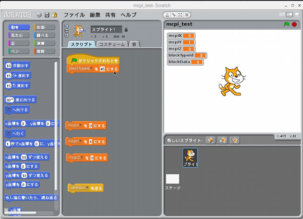 「Scratch」で(第4回で作成した)プロジェクト”mcpi_test”を開きます。