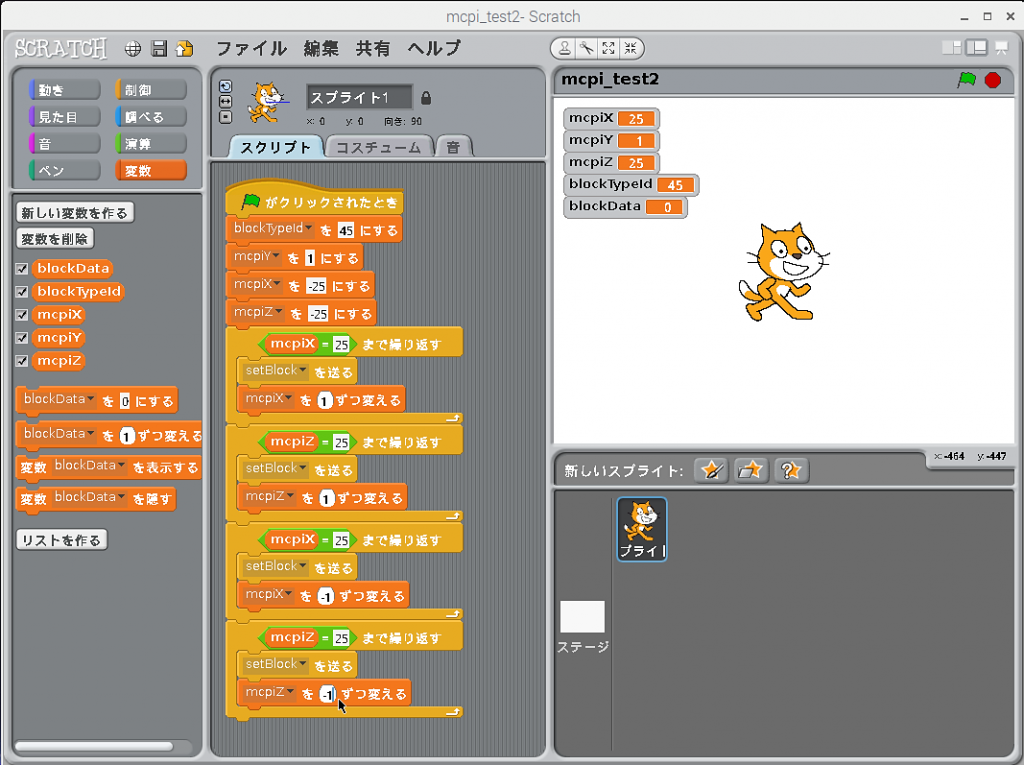 Scratch2MCPIでMinecraftを動かしてみよう!立方体を作って建物を作ってみよう